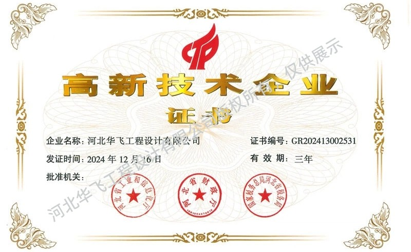 根據《高新技術企業認定管理辦法》,河北省工業和信息化廳等多部門聯合公布了一批高新技術企業認定名單,我司河北華飛工程設計有限公司(以下簡稱“華飛工程”)憑借雄厚的...